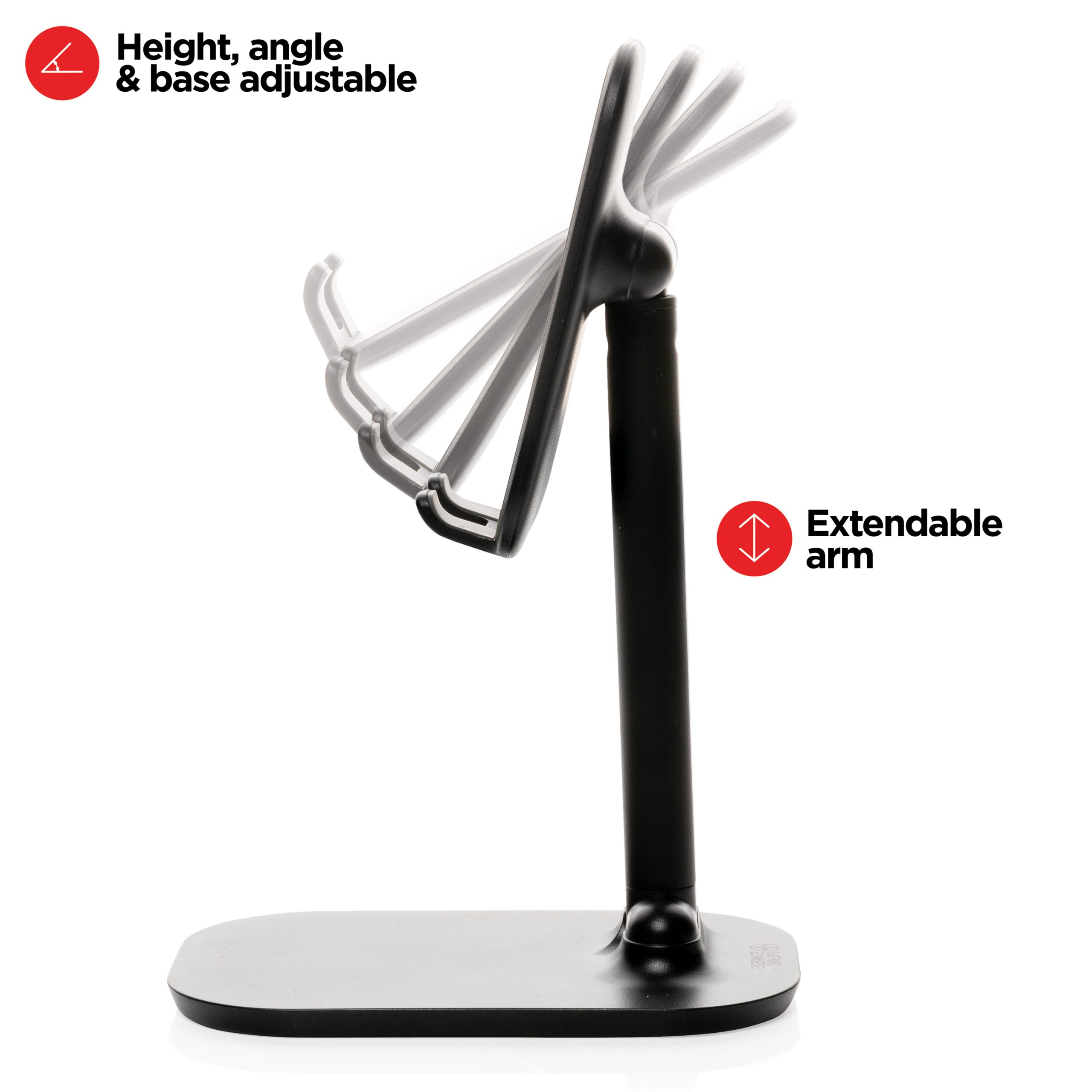 - Support téléphone réglable et pliable avec baril en aluminium pour plus de stabilité. Le produit peut être ajusté en hauteur à votre préférence. La base est très lourde pour assurer la stabilité. Avec un pad en silicone pour garder votre téléphone stable sur le support