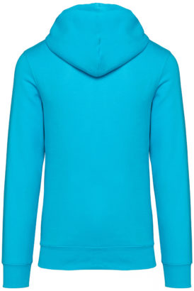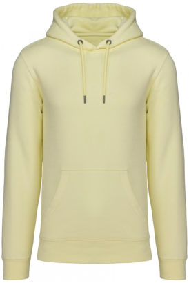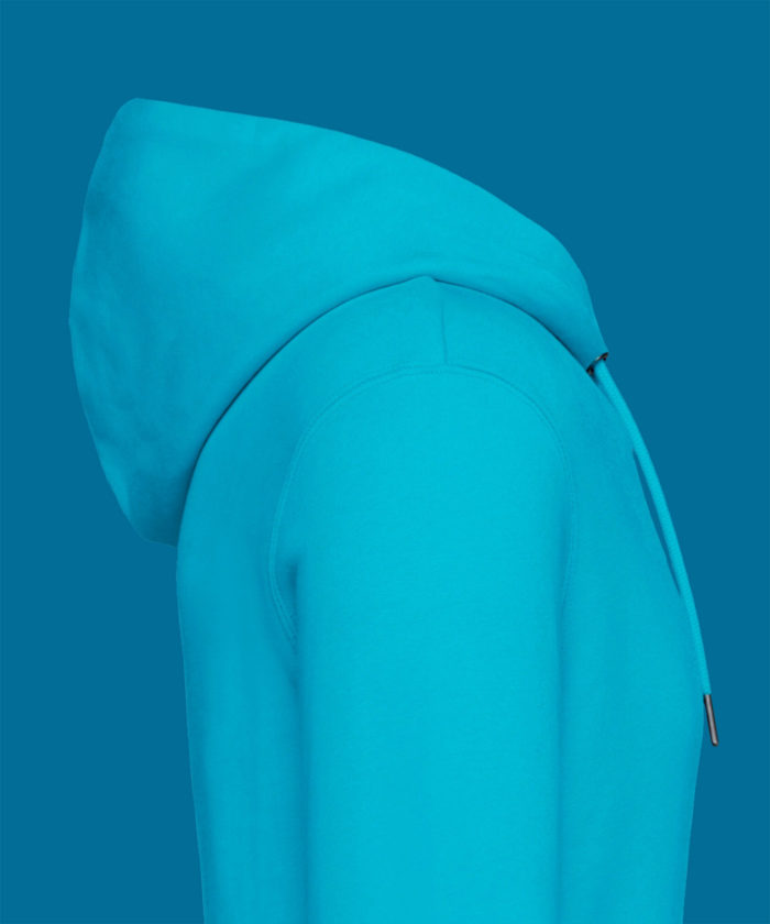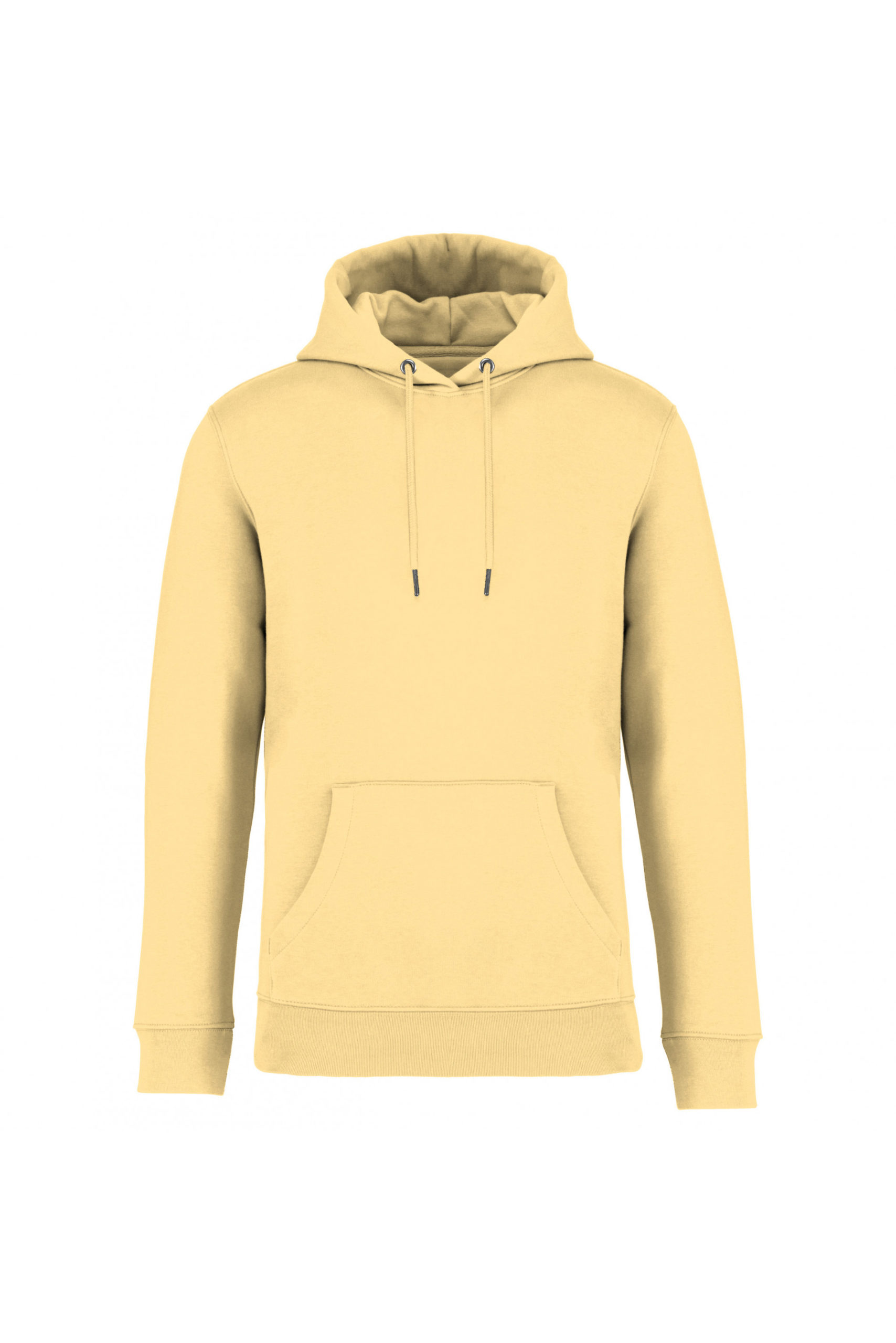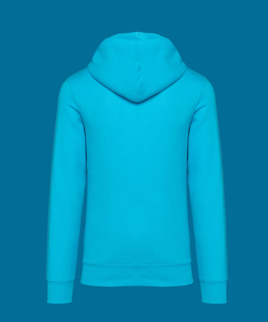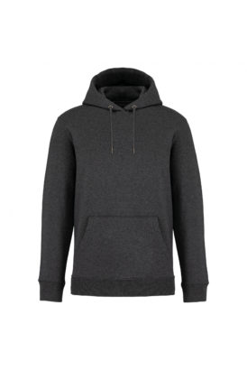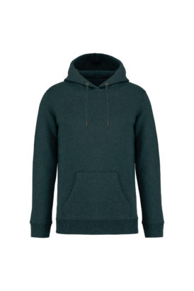 - 85% coton biologique et 15% polyester recyclé. Coton peigné ringspun. Unisexe. Coupe ajustée. Poche kangourou. Bande de propreté intérieur encolure dos. Capuche doublée en matière principale avec point d'arrêt cordon. Cordon rond avec embouts et œillets en métal recyclé