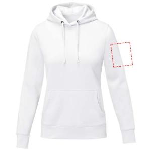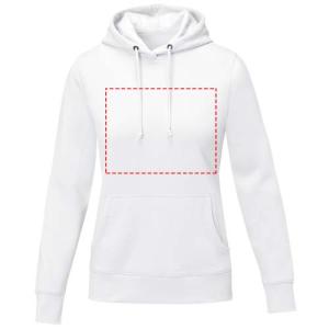 Ce pull possède une poche kangourou pratique et une capuche doublée avec des embouts et œillets en métal recyclé