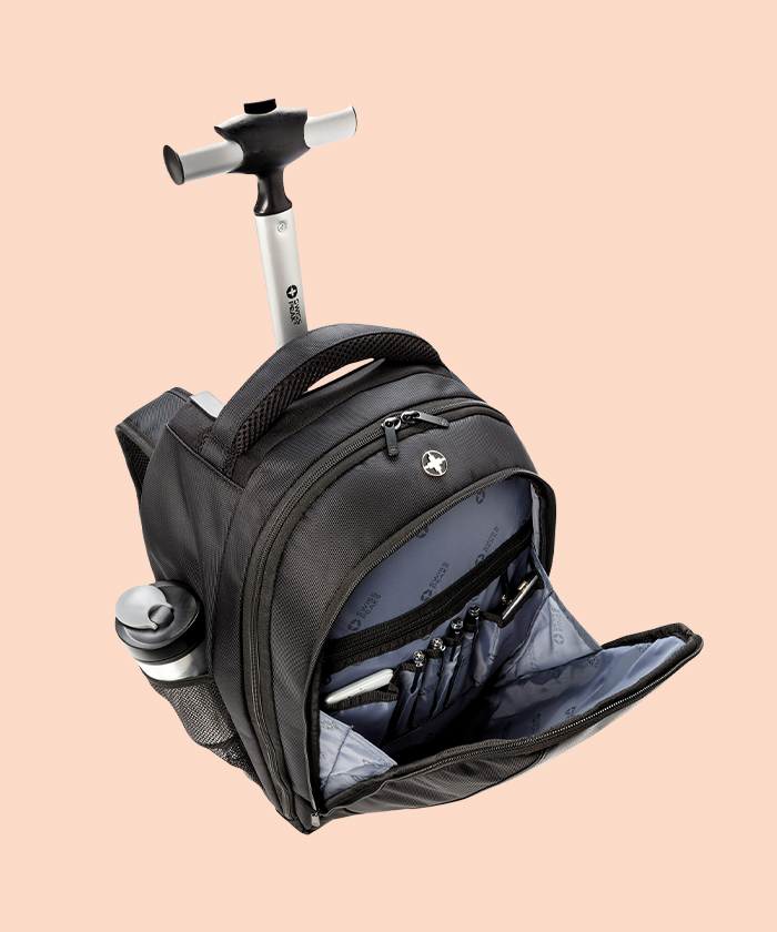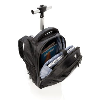 - Valise-sac à dos 1680D, de grande qualité, avec poignet trolley extensible en aluminium, idéal pour les voyages d’affaires. Compartiment principal avec poche pour ordinateur portable 15,6”. Poche frontale zippée avec fonction organiseur. Modèle déposé®