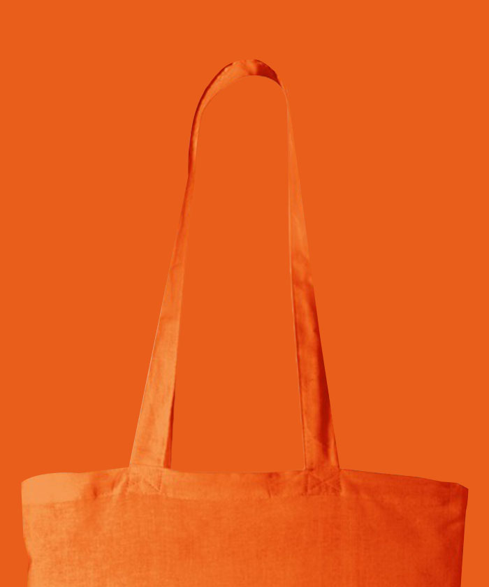 Sac shopping avec compartiment principal ouvert. Hauteur des anses de 30 cm. Coton, 100 g/m2.